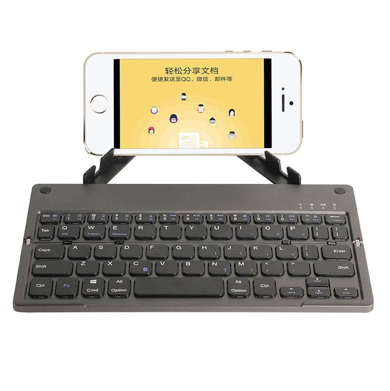 - PORTABLE FOLDING: The pocket wireless keyboard is a portable folding keyboard with a phone holder that allows you to work anytime, anywhere. If your device does not have BT capability, you will need a third party BT adapter (not included).
