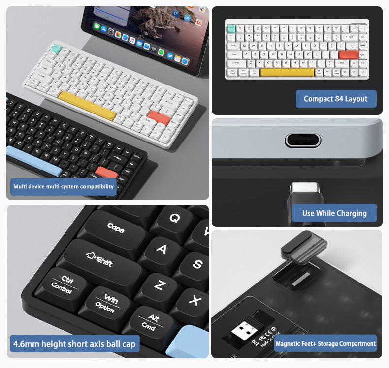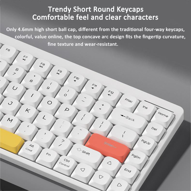 This product uses 2.4G, Bluetooth 5.0 and Typec cable connection three usage modes,2.4G reception range of 8M, Bluetooth reception range of 5M, equipped with 1850mA3.7V rechargeable battery. USB Full Speed2.0 supports real report rates up to 1000HZ. Support full key no conflict (all keys have response) All lighting effects support global control: brightness increase or decrease (a total of 5 default 3rd gear), speed slow (a total of 5 tacit recognition of the 3rd gear), adjusted to the extreme when the overall backlight flashing tips.