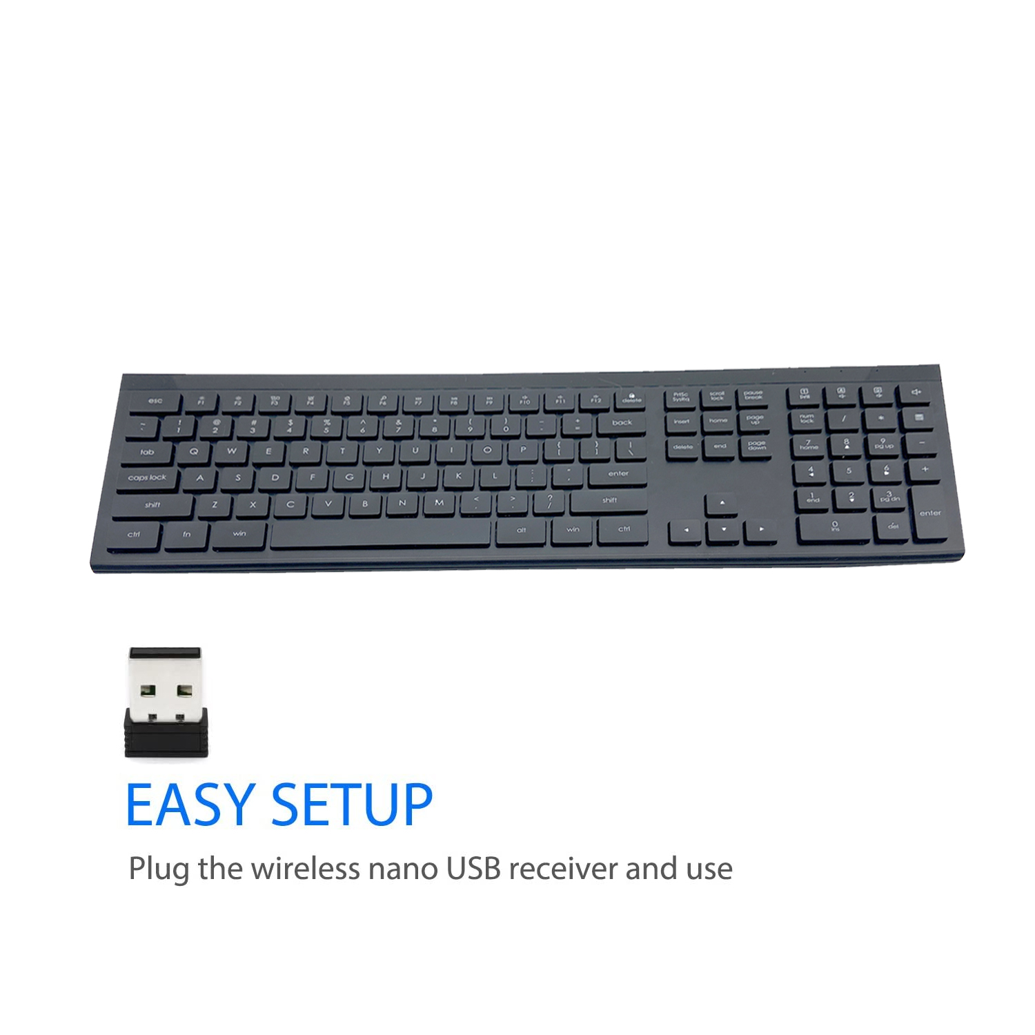 - Easy Setup: Simply insert the nano USB receiver into your computer and use the keyboard instantly.