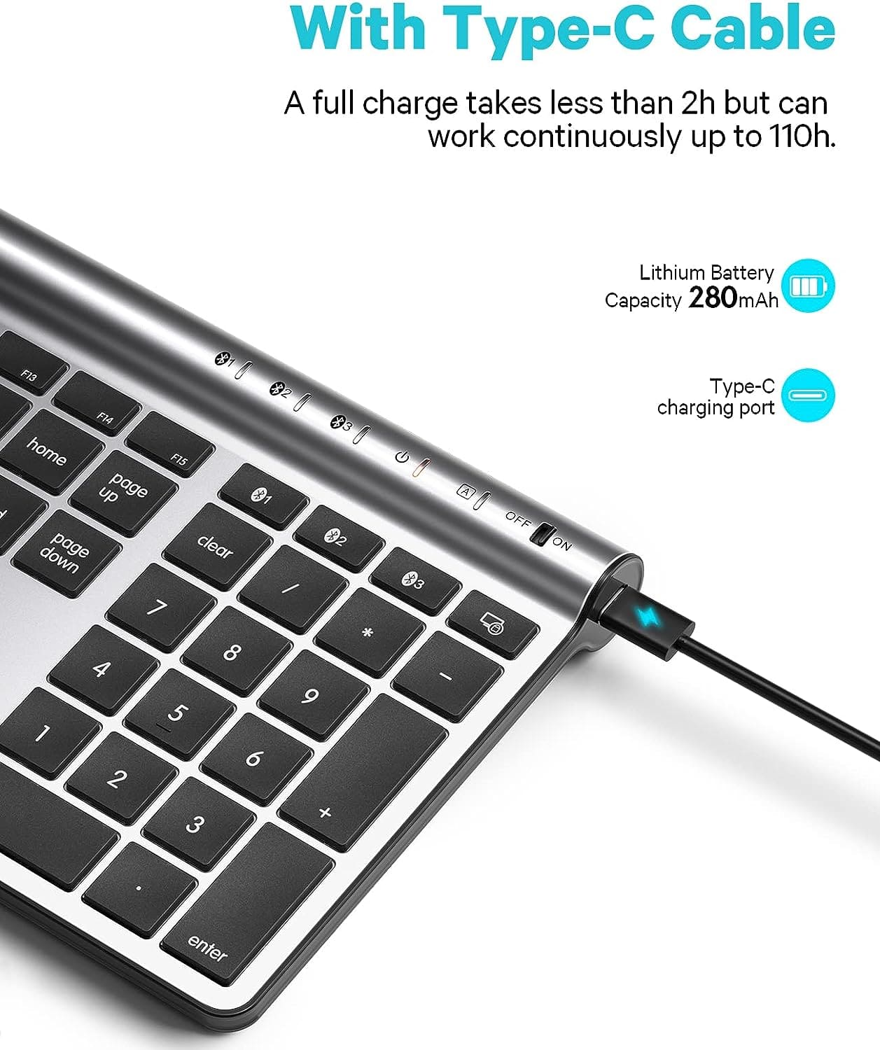 - ⌘ Wireless BT 5.1 Connection & 3 Bluetooth Access: Enable Bluetooth 5.1 for stable connection to any connectable electronic device within 33ft/10m. Once paired with the three devices respectively, you can switch freely between three devices by pressing the Bluetooth 1/2/3 button. (Support USB-A to USB-C Connection!)
