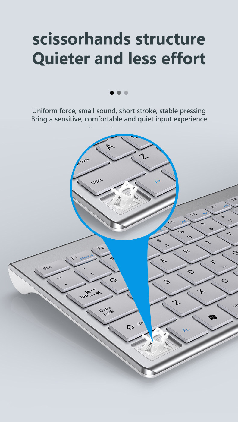 - Stainless Steel Keyboard&Silicone Cover-This keyboard is made of ABS material in the front and premium stainless steel material in the rear, giving it a more sleek and stylish look, slim but solid as well. There is also a silicone cover that comes with package to help keep your keyboard clean and dust free