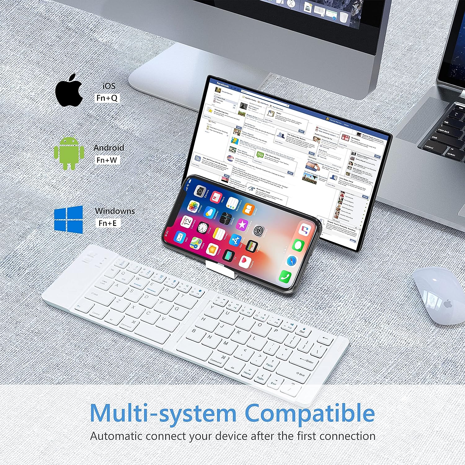 - 【Widely Compatibility】This foldable keyboard bluetooth is compatible with iOS, Android and Windows operating systems. The pocket size wireless keyboard bluetooth is suitable for iPhone, Android, Windows Tablet, PC and Windows Phone and other devices.