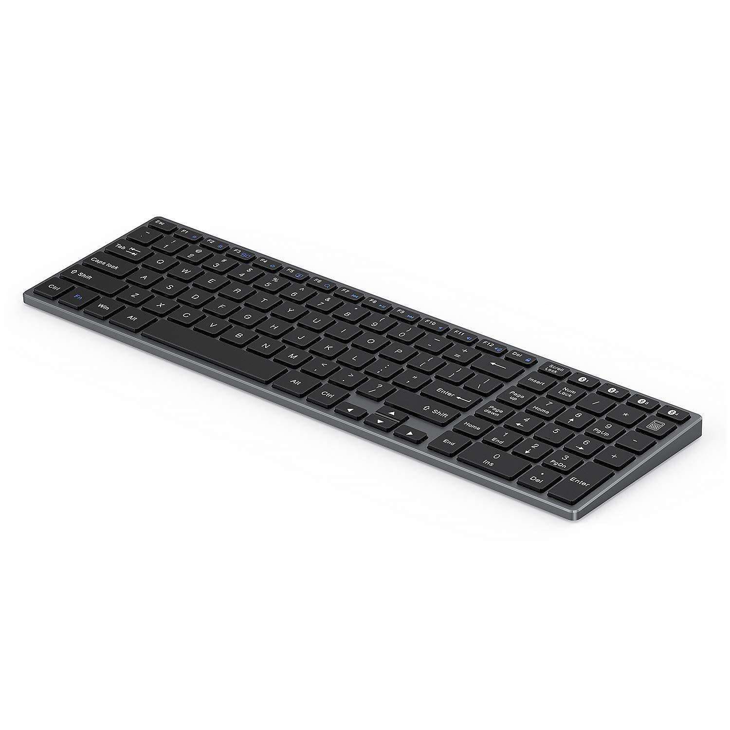 - DEDICATED BLUETOOTH KEYBOARD FOR MAC -- If you used to apple keyboard, you'll adjust in no time on this mac keyboard. The Bluetooth mac keyboard features a Mac key layout with a sleek and modern design in space gray color, greatly matching your apple devices and providing you superior typing experience in less than half cost of an apple keyboard. And the numeric keypad is great for spreadsheets and finance applications too!