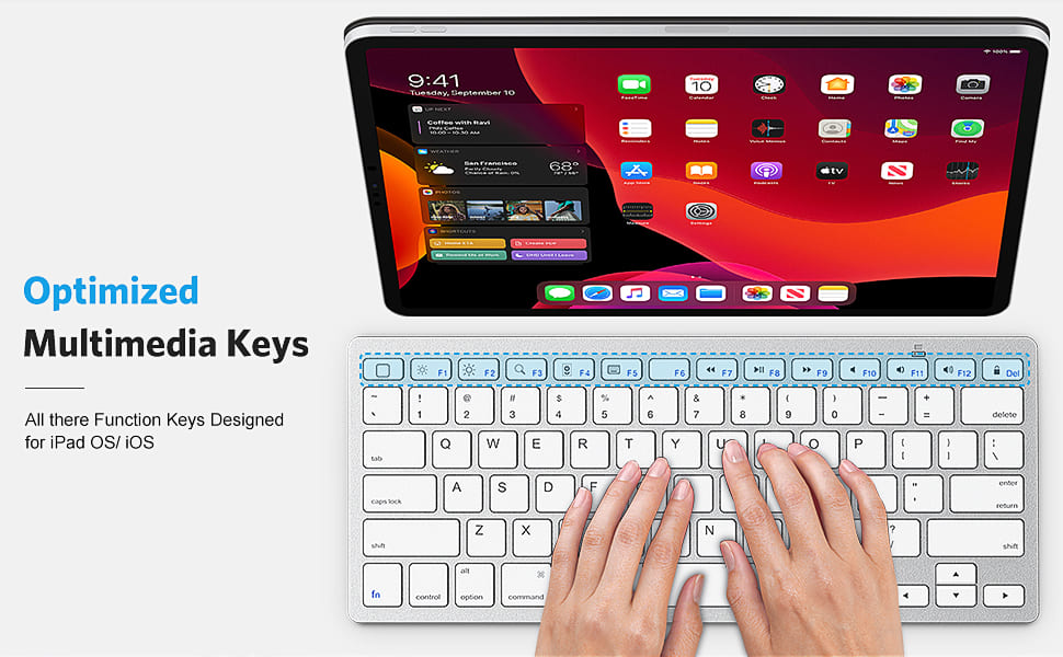 - 3. Reasonable Layout. QWERTY Layout with Hot keys Customized for iPads, Including Volume, Music Control, Brightness, etc.