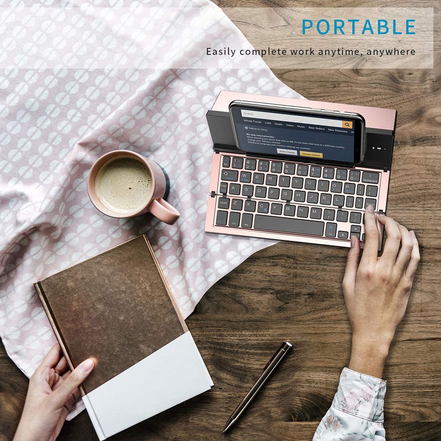 - 【A Perfect Gift Choice】: Best gift choices for friends: Folding wireless BT keyboard, perfect for travel. What you Get: Foldable BT Keyboard, USB Charging Cable, User Manual, 12-Month Manufacturer's Warranty and Friendly Customer Service.