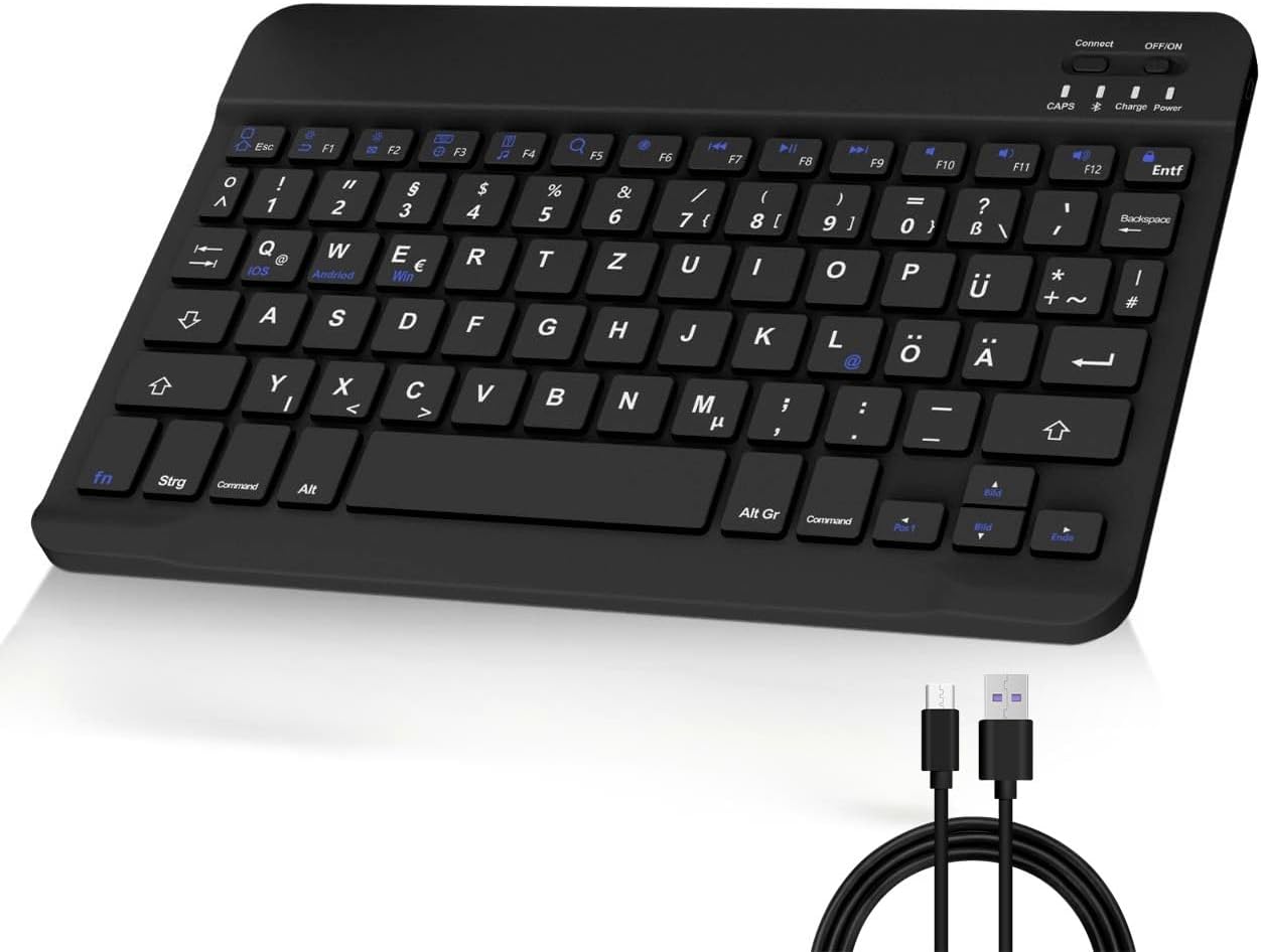 - Light portable and compact: This keyboard is much lighter, smaller than traditional keyboard. You can easily carry it without taking up more space on your desk or bag. 10 inch keyboard dimensions: 25 x 15 x 0.6 cm, weight: 180g.