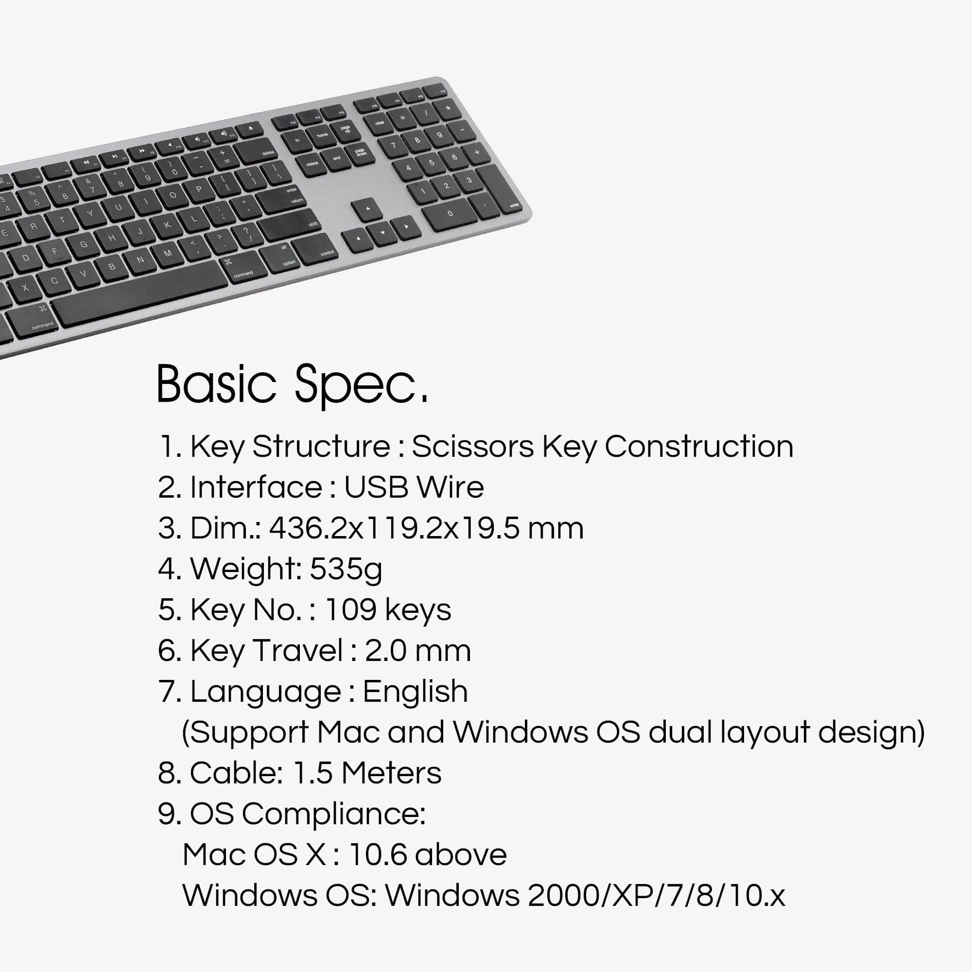 - Designed dual layout function via key switching, it canto be a Mac wire keyboard but also compliance with Windows PC OS keyboard.
