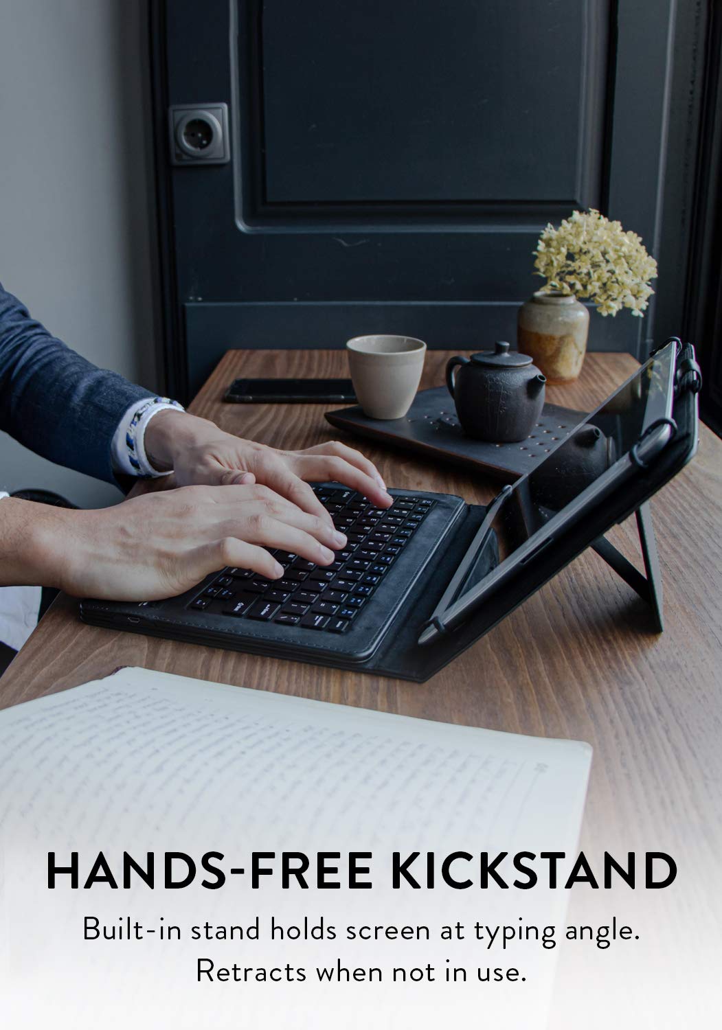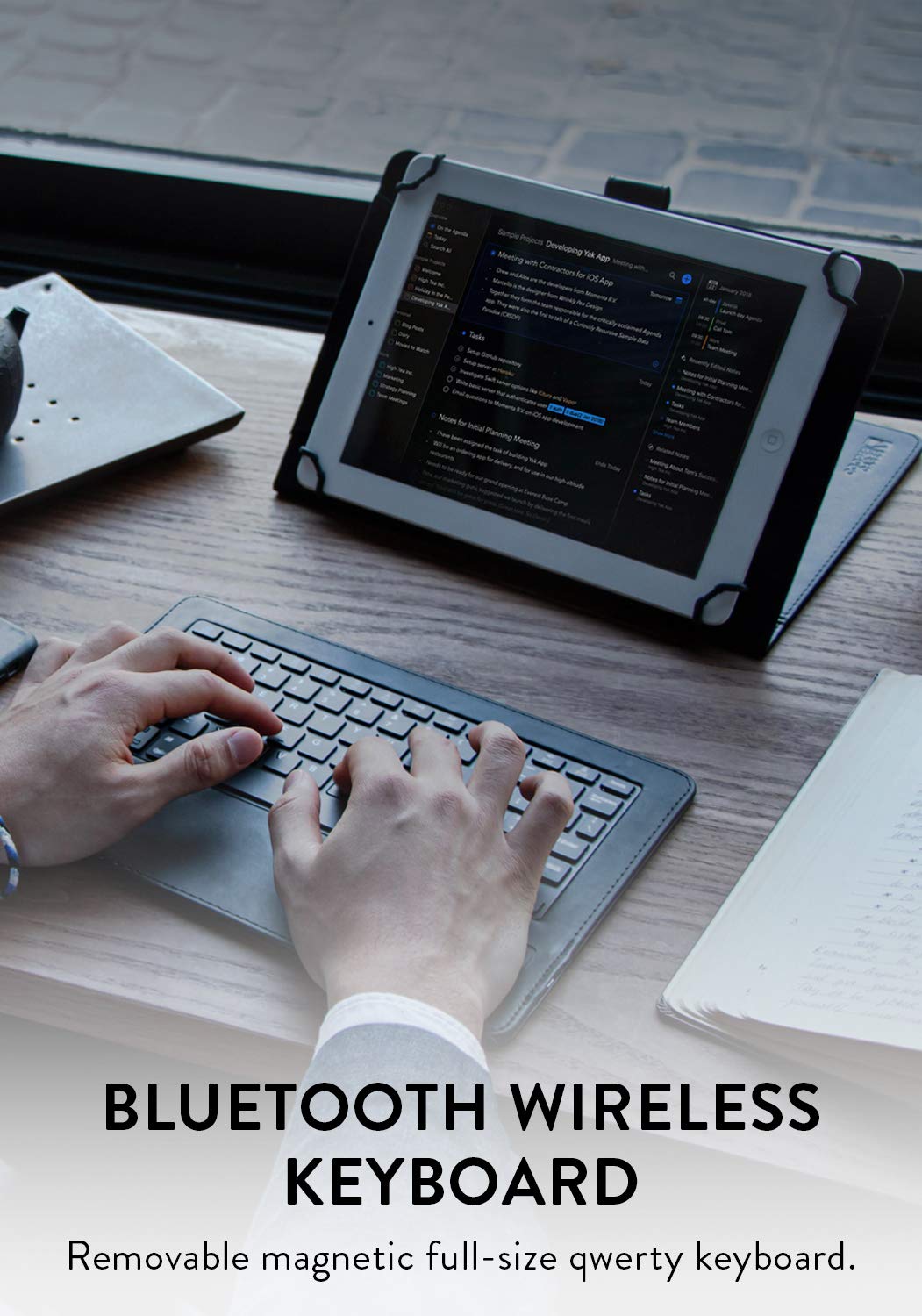 - Business, School, Travel, Work from Home: Portable, easy to carry keyboard case for any occasion; package includes leather case, keyboard, micro USB charging cable for recharging keyboard & user manual