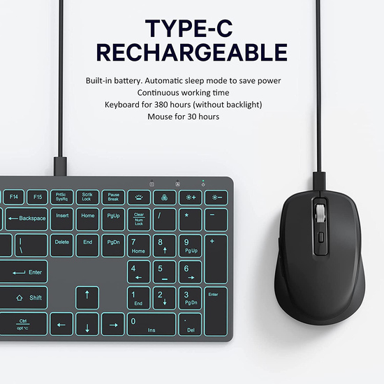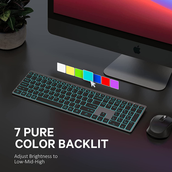Upgraded Wireless Keyboard with Closable Backlit(7 Colors): Upgraded original design with controllable Keyboard Backlight RGB. You can turn off the backlight when working in the day. Turn on the backlit when work at night that you can see the keys clearly, don't need to turn on the light which disturbing your families. WARM NOTED: Press Esc+Fn to switch on-off. Press F1+Fn to switch the colors of backlit. Mice resolution 3 leves : 800/1200/1600.