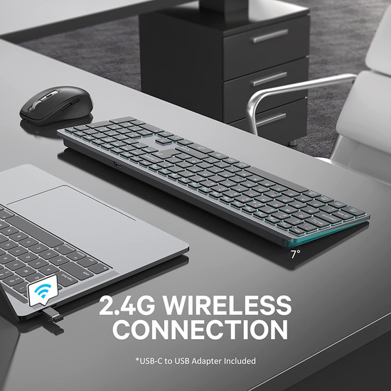 - ★ 3200mAh Rechargeable Stable 2.4G Wireless Keyboard Mouse Combo: Our wireless mouse combo use STABLE 2.4G wireless connection technology, powerful and reliable connection up to 33feet(10m) without any delays. Plug and play USB receiver can connect both the keyboard and mouse without any extra drivers, ensures a strong and reliable connection. NOTED: Keyboard is rechargable and mouse supplied by an AA battery.